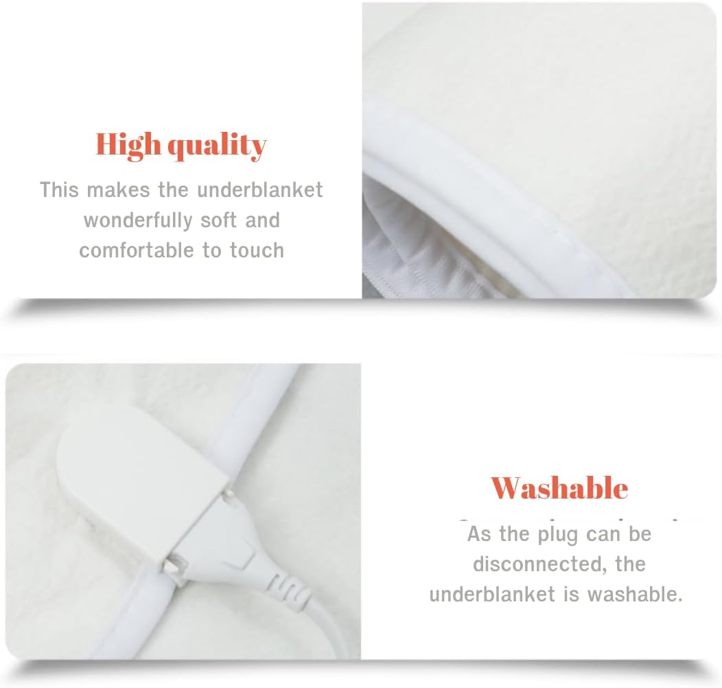 - Buena Seguridad: Incorpora un termostato con protección contra sobrecalentamiento y es lavable a mano a 30°C para un uso seguro y limpio.