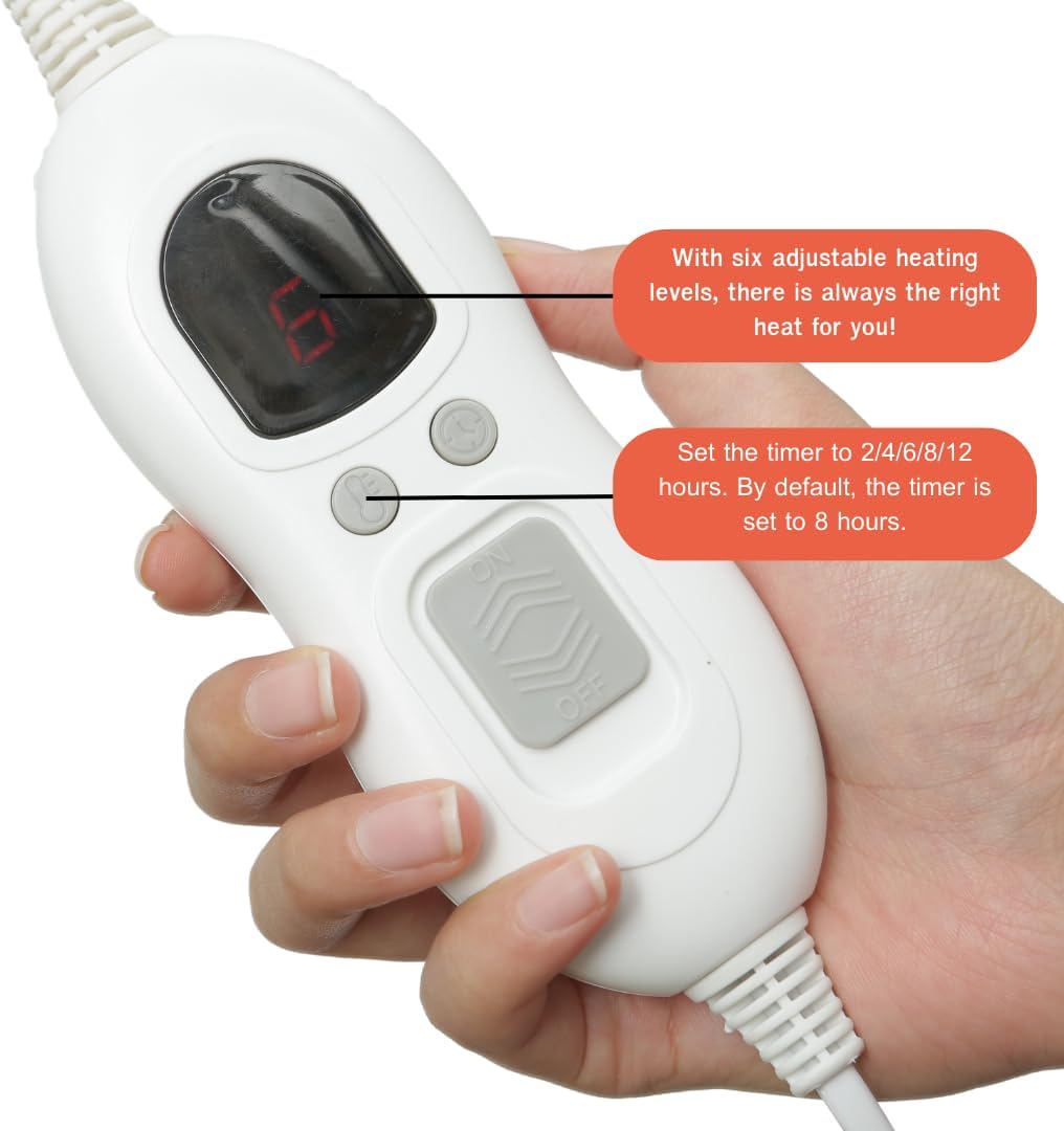 Manta Eléctrica 150x80 cm – Con Temporizador y 6 Ajustes de Temperatura